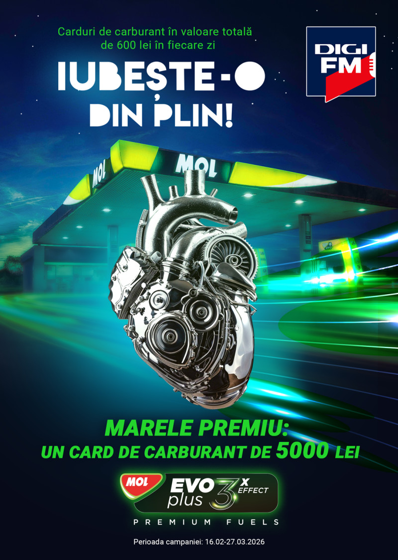 Ce trebuie să faci? Să fii mega îndrăgostit de mașina ta și să-ți dorești să o răsfeți cu cel mai bun carburant, MOL EVO Plus. Și să asculți Digi FM și să te înscrii dimineața, la Oana Zamfir și Vlad Craioveanu. (SMS cu textul „PLIN DIGI FM” la 3815)