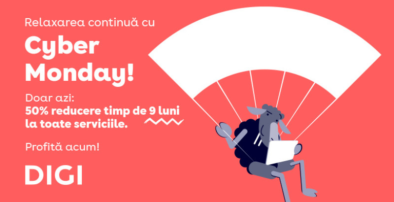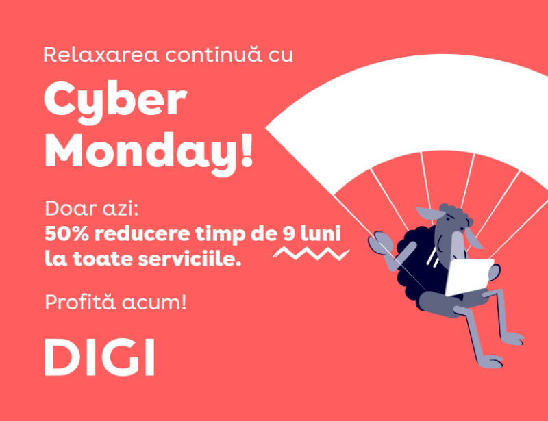 Pentru cei care nu au reușit să profite de promoția de Black Friday, DIGI revine cu o nouă sesiune de reduceri și desfășoară luni, 10 noiembrie, campania Cyber Monday;