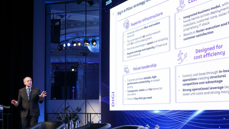 Digi Communications N.V., jucător important în sectorul telecomunicațiilor europene, a organizat joi, 5 martie 2026, la Madrid, DIGI Capital Markets Day 2026. Întâlnirea a avut loc la Centrul El Círculo de Bellas Artes și a oferit investitorilor, experților și analiștilor pieței de capital o perspectivă amplă asupra dinamicii operațiunilor, priorităților strategice pentru următorii ani și poziționării Grupului pe toate piețele în care își desfășoară activitatea.