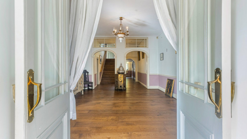 Proprietatea, clasificată ca monument istoric, se întinde pe o suprafață impresionantă la marginea satului Dolton. Conacul are nouă dormitoare, mai multe saloane, o bibliotecă și o anexă separată pentru oaspeți. Domeniul include, desigur, grădini, pășuni și un rezervor de apă.