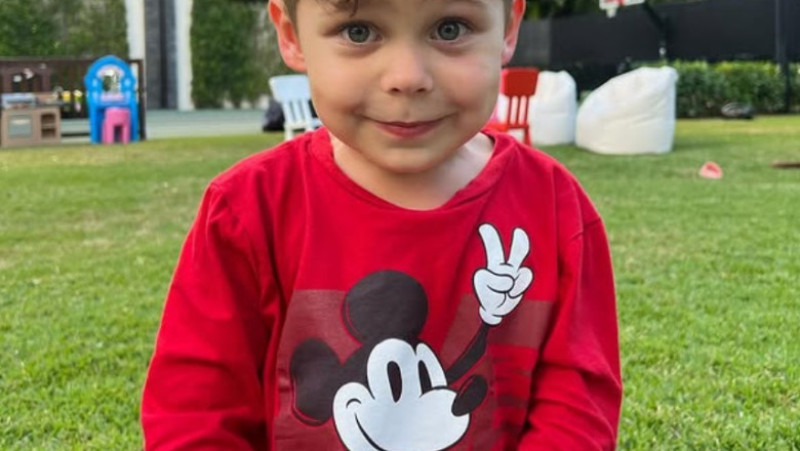 Cuplul a postat pe Instagram o fotografie care îl înfăţişează pe nou-născut înfăşurat într-un pled alb cu dungi roz şi negre, la fel ca cearşaful de pe pătuţul în care doarme, şi o căciulă roz cu dungi albastre, lângă o jucărie de pluş.