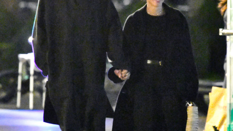 Artistul în vârstă de 31 de ani și actrița din „Batman” au purtat ținute casual asortate, crem - negru.