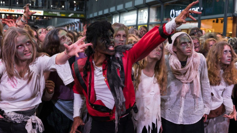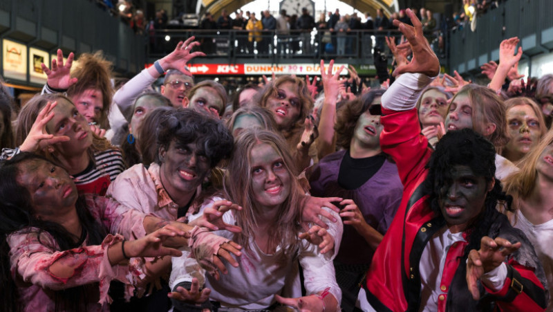 Persoane îmbrăcate în zombi au recreat vineri celebra coregrafie din videoclipul piesei "Thriller", a lui Michael Jackson, în gara centrală din Hamburg pentru a sărbători Halloween-ul.