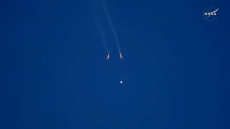 Puţin peste un minut mai târziu (T+2:08), la o altitudine de aproximativ 48 de kilometri, motoarele goale ale rachetei sunt ejectate. Alte câteva componente neesenţiale, inclusiv sistemul de întrerupere a lansării, sunt, de asemenea, aruncate. Acest lucru reduce greutatea totală a navei spaţiale şi permite motoarelor principale ale rachetei să o propulseze pe restul drumului. Componentele ejectate vor cădea probabil înapoi pe Pământ undeva în Oceanul Atlantic.