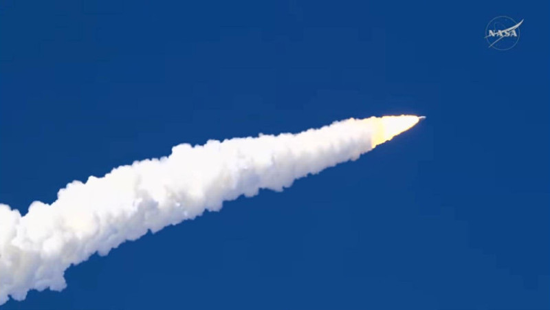 Durează aproximativ 6,5 secunde pentru ca racheta gigantică să depăşească turnul de lansare după ce cele două motoare cu combustibil solid se aprind la decolare (cunoscută şi sub numele de T-0). De acolo, echipajul se ridică rapid spre cer, fiecare membru experimentând o forţă de până la 4 G în timp ce luptă pentru a scăpa de gravitaţia planetei noastre. Se aşteaptă ca aceştia să depăşească bariera sunetului după 56 de secunde de zbor vertical (T+0:56).