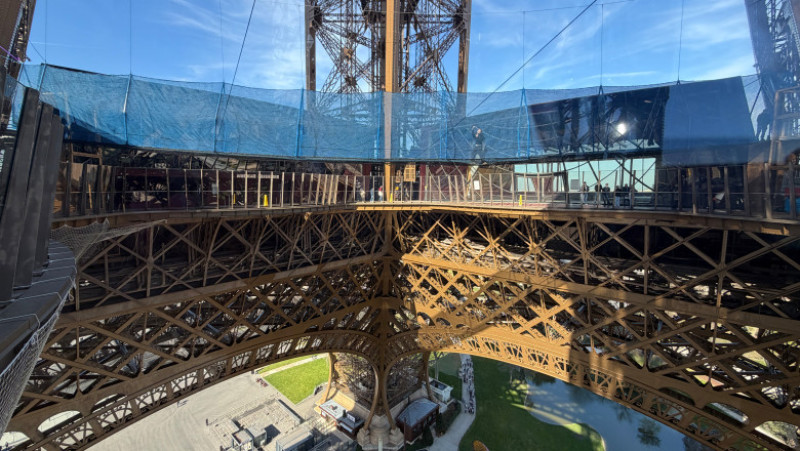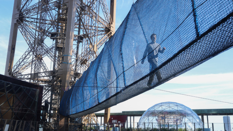 Atracția temporară, care a fost inaugurată marți, se întinde pe 40 de metri între pilonii de est și vest ai primului nivel și se află la o înălțime de circa 60 de metri deasupra solului.