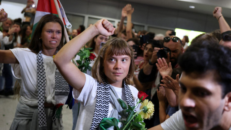 Luni, activişti din flotila către Fâşia Gaza expulzaţi de către Israel, inclusiv Greta Thunberg, au sosit la Atena.