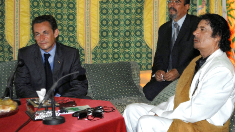 Potrivit acuzării, fostul preşedinte (2007-2012) ar fi favorizat, în schimbul mitei, revenirea Libiei pe scena internaţională şi ar fi fost de acord să-l graţieze pe cumnatul lui Gaddafi, Abdallah Senussi, care a fost condamnat la închisoare pe viaţă pentru rolul său în atentatul avionului UTA DC-10, soldat cu moartea a 170 de persoane în 1989.