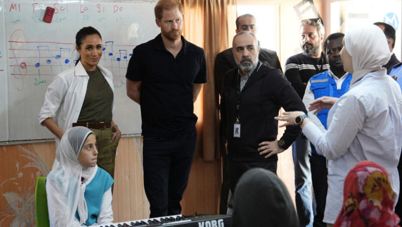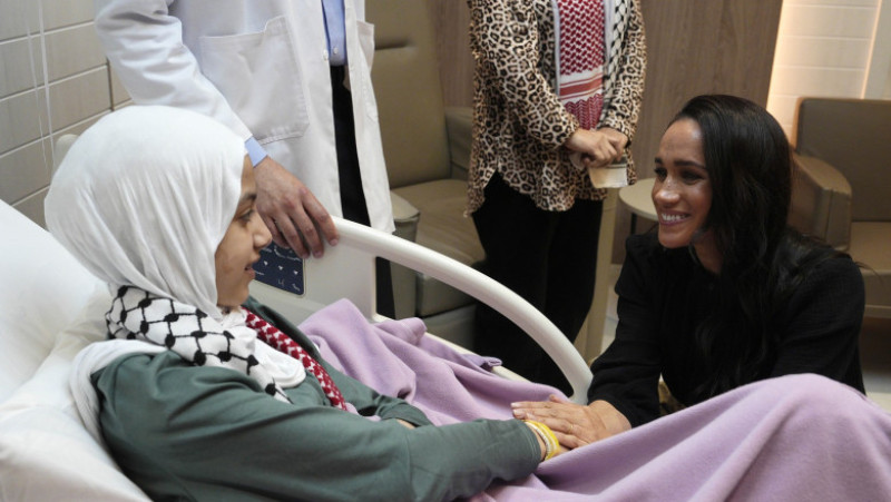 Prinţul Harry şi Meghan, invitaţi în Iordania de către Organizaţia Mondială a Sănătăţii (OMS), s-au întâlnit într-un spital, la Amman, cu copii evacuaţi din motive medicale din Fâşia Gaza, devastată de doi ani de război între Israel şi Hamas.