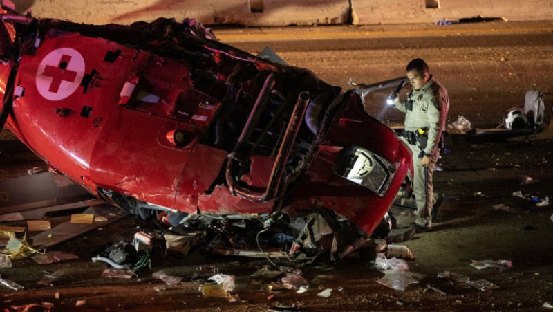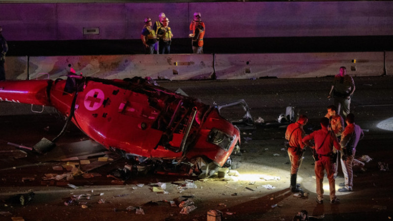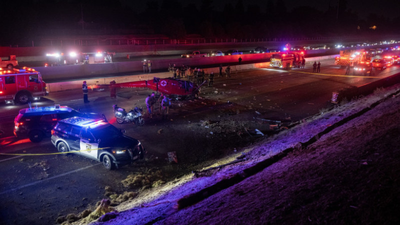 Trei persoane se află în stare critică după ce un elicopter medical s-a prăbuşit pe o autostradă din Sacramento, California, potrivit pompierilor, relatează CNN.