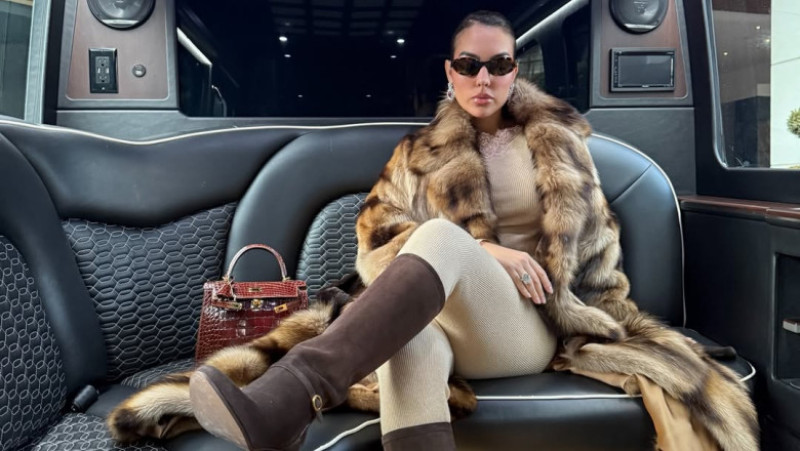 Pentru acest eveniment special, Georgina Rodriguez a ales o ținută elegantă. Vedeta a purtat o fustă neagră până la genunchi, o jachetă asortată, dresuri transparente și pantofi stiletto negri. Apariția a fost completată de accesorii atent alese. În centrul atenției s-a aflat inelul de logodnă primit de la Cristiano Ronaldo, evaluat la milioane de dolari, dar și un al doilea inel cu diamant radiant, purtat pe mâna dreaptă. Georgina a mai purtat bijuterii cu smaralde și diamante, un colier asortat și o mini-geantă roșie din piele, care a adus un plus de culoare ținutei.