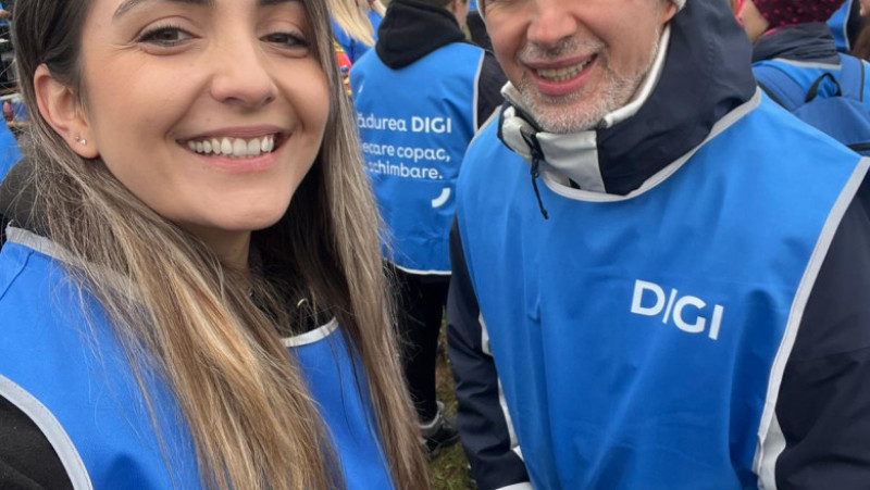 Beatrice Ghiciov și Nono Semen au participat astăzi la acțiunea de împădurire „Pădurea DIGI”, organizată în Vânătorii Mici, județul Giurgiu, alături de alți peste 100 de voluntari din Grupul DIGI.