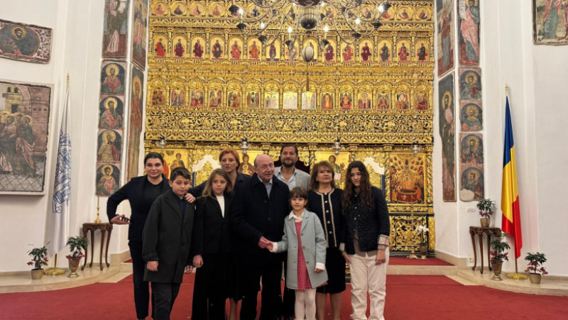 Ambii cu pahare cu șampanie în mână, însoțiți de fiicele Ioana și Elena, de soțul Ioanei, dar și de nepoții de la ambele fete, au primit binecuvântări din partea preotului care le-a citit o slujbă specială pentru borna importantă atinsă în viața de familie.