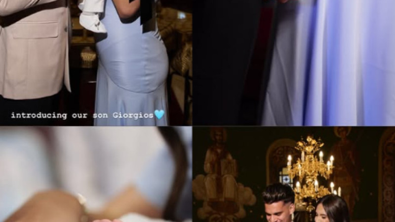 Imaginile de la botez sunt grăitoare. Tineri, îndrăgostiți și foarte fericiți, Ianis și Elena au fost eleganți și frumoși. Fotbalistul, într-un costum cu pantaloni negri și sacou bej, și-a ținut soția de mână pe parcursul ceremoniei religioase. Tânăra mamă, care și-a recăpătat silueta în timp record, a strălucit într-o rochie bleu, lungă, cu panglici negre la umeri.