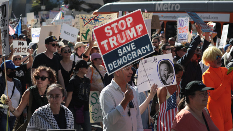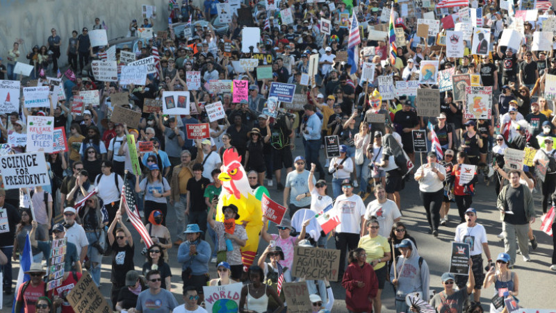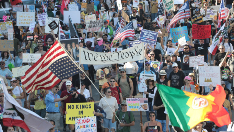 Mii de persoane s-au adunat pentru a protesta la adresa politicilor preşedintelui Donald Trump în oraşe din întreaga SUA - printre care New York, Washington DC, Chicago, Miami şi Los Angeles, relatează BBC. Aproape şapte milioane de protestatari, cu aproximativ două milioane mai mulţi decât în iunie, s-au adunat, sâmbătă, pentru a doua rundă de demonstraţii „No Kings” (Fără regi), în semn de opoziţie faţă de ceea ce au descris drept agenda „autoritară” a preşedintelui Donald Trump, au anunţat organizatorii, citaţi de CNN.