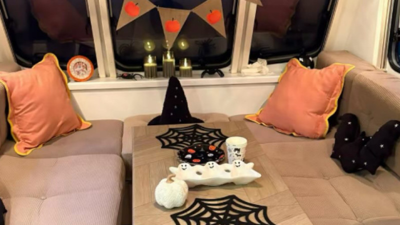 „Am schimbat singuri podeaua pentru aproximativ 120 de lire, ceea ce a transformat imediat întregul spațiu. În loc de tapițerie scumpă, am reîmprospătat canapelele cu huse ieftine, de aproximativ 80 de lire”, adaugă Xana. În total au cheltuit