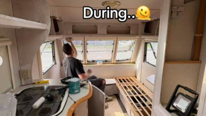 Deși rulota părea să fi avut vremuri mai bune, din punct de vedere structural era în stare bună. Așa că soții au cumpărat-o și s-au concentrat în principal pe schimbări estetice. Un mare avantaj a fost faptul că Martin lucrează ca tâmplar.